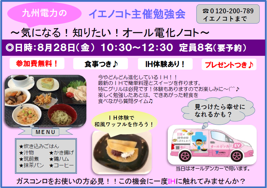 2020年8月28日(1 event) 九州電力の~気になる!知りたい!オール電化ノコト~開催日:2020年8月28日